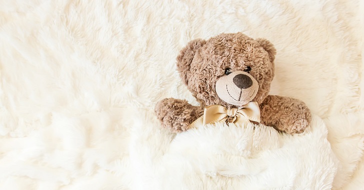 ぬいぐるみの抱きしめるポーズがかわいらしいブランケット